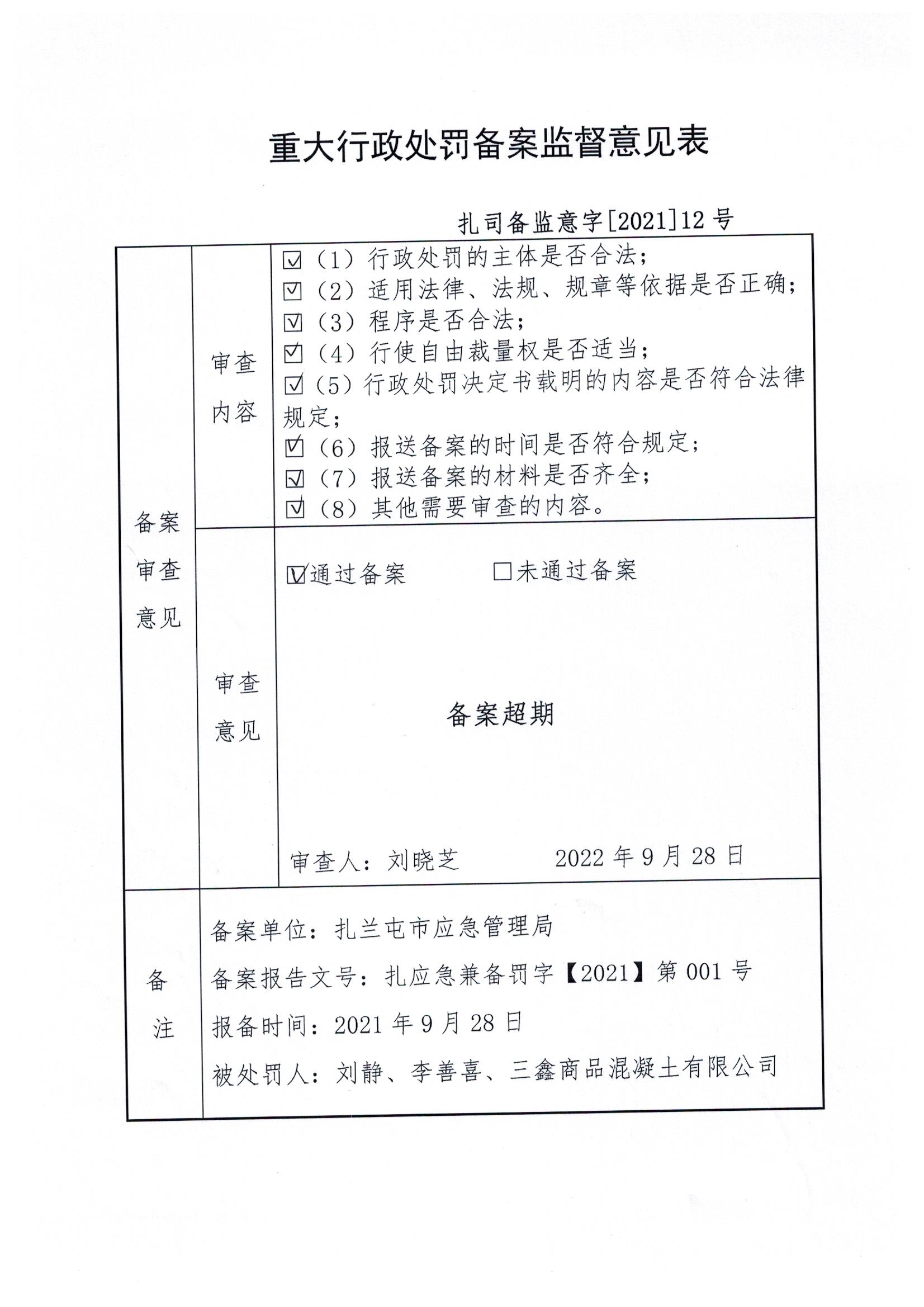 重大行政处罚决定登记备案表